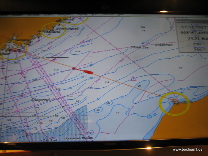 Pünktlich um 23.15 Uhr legten wir bei Dunkelheit ab und mit (lt. Kapitän) 35