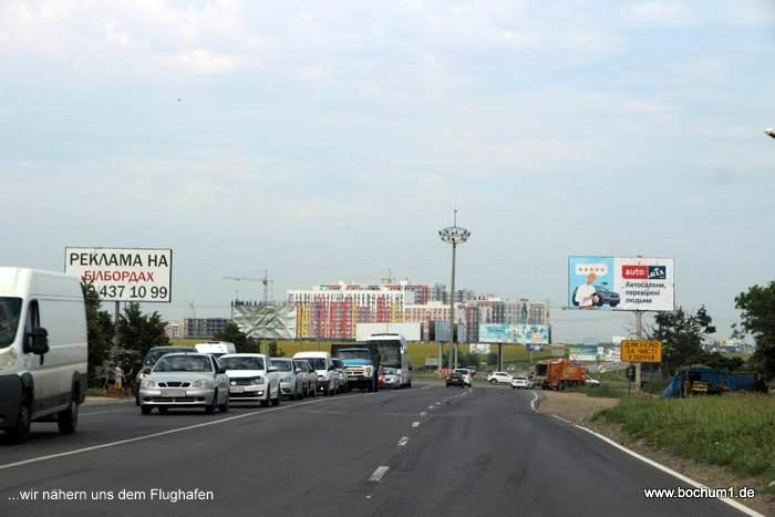 Gebäude. Dann weiter über eine 5-spurige Ausfallstraße durch die