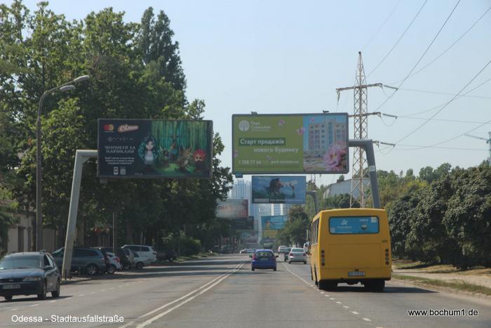 Vorstädte von Odessa, vorbei an riesigen Wohn-Hochhäusern und