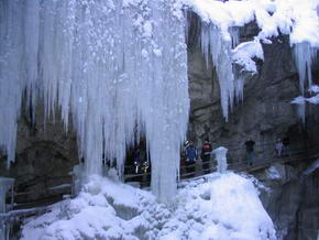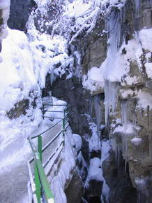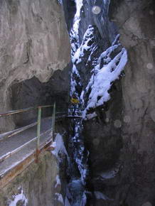 Frei nach dem Motto, iss schnell, lass viel Kohle da und mach den Platz ebenso schnell wieder frei. Also schnell wieder zum Auto, da der Parkschein bereits seit ein paar Minuten abgelaufen war, bzw. noch schnell eben zur Kurverwaltung ein Prospekt, wo alle Zimmervermietungen aufgelistet waren für meinen Vater gekauft. Selbst für jenes Werbemittel hatte ich einen Euro zu zahlen. Naja... Letztes Ziel war die Breitachklamm, welche etwas außerhalb von Oberstdorf, etwa 6 KM entfernt bei Tiefenbach liegt und bereits vor 100 Jahren von Johannes Schiebel begehbar gemacht wurde. Der Fluss Breitach, welcher ein Zufluss der Iller ist, bahnt sich seinen Weg durch teilweise mehreren hundert Meter rechts und links aufsteigendes Felsgestein. Teilweise ist die Schlucht mit 2 Metern Breite derart eng, dass in Teilen jener noch nie Sonnenlicht schienen. Erinnerte mich teilweise an die Narrows im Zion Nationalpark der USA. |