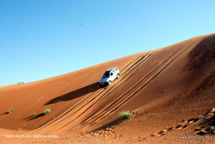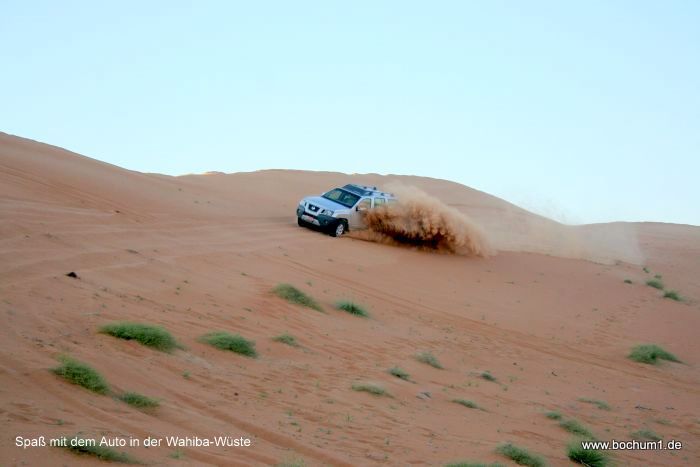 Meter hohe Sandberge mit dem Wagen hinauf kommt. |