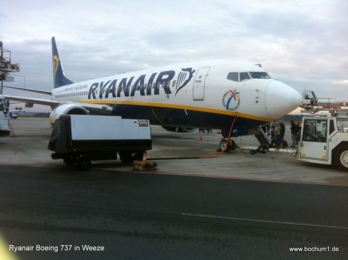 Ryanair Flügen im Gänsemarsch zur bereitstehenden Boeing 737-800. Bei