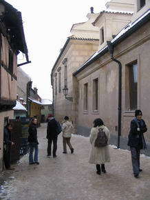 Dieser ist sowohl für Prager, als auch für Touristen ein beliebter Treffpunkt zum Flanieren oder Beobachten vorgenannter in einem der unzähligen Straßencafes, mit wunderschön restaurierten Häuserfassaden. Desweitern ist der sich dort befindliche riesige Platz mit dem Jan Hus Denkmal auch das historische Zentrum von Prag, wo unter anderem 1621 die Hinrichtung von aufständischen Protestanten stattfand. Dort befindet sich auch das Altstädter Rathaus mit seiner berühmten astronomischen Uhr. Mittlerweile 3 Uhr, trennten wir uns von der Gruppe, da wir fast starr vor Kälte, nicht noch 20 Minuten laufen wollten, um dann mit allen in einem Brauereirestaurant zu essen. Wir suchten uns in einer Seitenstraße ein Restaurant, wo es tschechische Hausmannskost gab und wir für knapp 20 Euro mit Getränken beide satt wurden. Wieder aufgewärmt, ging es nun zum Shopping. Das Kulturprogramm war für beendet erklärt. |