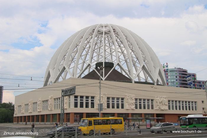 riesige Kaufhaus herum zum Zirkus Jekaterinburg, ein komisches Gebäude mit