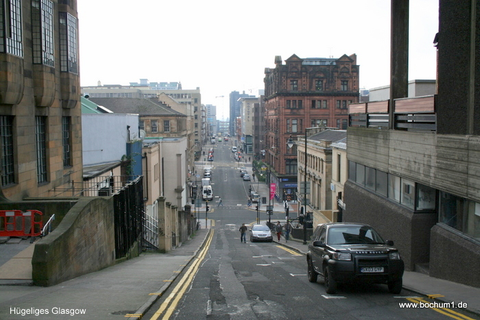 um 14 Uhr auf den Straßen Glasgows unterwegs. Zuerst entlang der