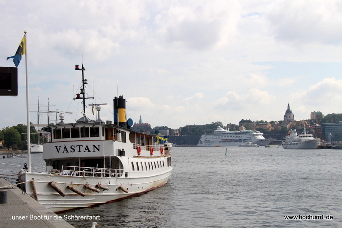 Uhr mit dem kleinen Schiff Västan ab. Vorbei am Vasa-Museum und dem