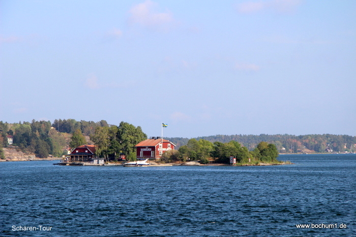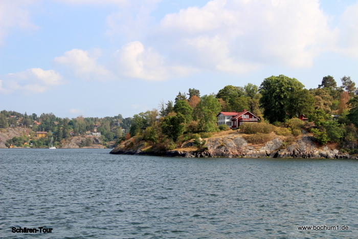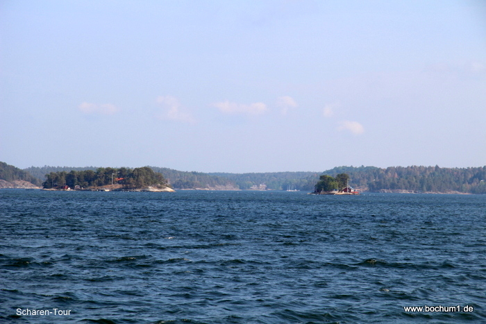Inseln, teilweise nur mit einem roten, typisch schwedischen Haus darauf. |