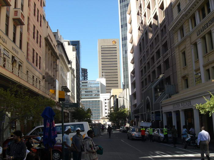 Zu erkennen an einer gelben Weste, mit der Aufschrift „Parking Instructor“. Eigentlich handelt es sich um ein Programm des Staates, um der schwarzen Bevölkerung, welche sonst kein Einkommen hätte, so zu genau diesem zu verhelfen. Anfangs noch ganz witzig, nervten diese auf dem weitern Weg unserer Reise, da jene auch beim Einparken behilflich sind, meinem Empfinden nach aber meist nur wirre Zeichen machten und im Weg herum standen. Ich hatte immer Sorge einen umzufahren, wenn er hinter dem Auto stand. In größeren Städten oder Touristenattraktionen standen diese immer (zu fast jeder Uhrzeit) und überall herum. Unser nächster Weg führte uns in die Innenstadt. Am Montag ausgesprochen geschäftig und deshalb gar nicht mehr so unsicher wirkend wie am Sonntag, parkten wir das Auto im Parkhaus im Gebäude der Hauptpost. Die Innenstadt ist wie in den meisten Millionenstädten, ein reines Dienstleistungszentrum mit Hochhäusern. Wo wir schon bei den Millionen sind – 2006 hatte Kapstadt 2,375 Mio. |
