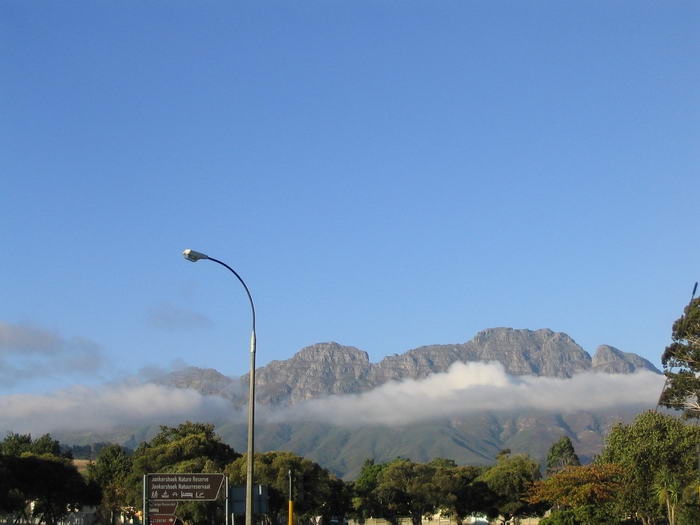 Dort erhält man Antiquitäten, Bekleidung, afrikanische Handwerkskunst und sonstigen Ramsch und Kitsch auf engstem Raum. Auch die 1722 erbaute Dutch Reformed Mother Church am Ende der Kerk Street sahen wir uns von außen genauer an. Auf das Dorpmuseum hingegen verzichteten wir, da es schon recht spät war und irgendwie der ganze Ort aufgrund der alten Häuser, wie ein Museum auf uns wirkte. Als wir in einer der kleinen Straßen draußen in einem Restaurant saßen und etwas tranken, entstand der Gedanke, heute Abend noch mal nach Kapstadt ins Century City zu fahren, da Susanne dort Schuhe gesehen hat, die sie nun unbedingt haben wollte. Da es erst 18 Uhr war, kein Problem. Erst die R304 für 13 km und dann immer die N1 Richtung Westen. Am Ortsausgang von Stellenbosch sahen wir dann das andere Gesicht der Stadt. Uns fiel zuerst auf, dass sehr viele Leute, ausschließlich Schwarze, zu Fuß unterwegs waren. Zudem kündigten Schilder an, dass der folgende Streckenabschnitt ein Unfallschwerpunkt sei. Um es nicht weiter spannend zu machen, wir fuhren an einem Township vorbei. Soweit von der Straße ersichtlich, waren dort in Reih und Glied kleine, windschiefe Blechhütten, welche sehr nah beieinander standen und nur von Trampelpfaden durchzogen. Da wir das zum ersten mal sahen, ein ziemlich erschreckendes Bild. Auf einem 1000 m2 großen Grundstück, wo so manch Weißer sein großes Anwesen hat, leben dort tausende Schwarze zusammengepfercht. |