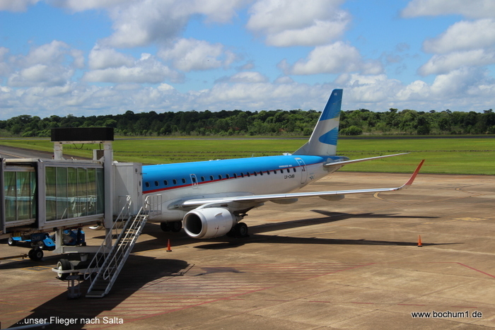 Sicherheitskontrolle, worauf wir am Gate weitere 10 Min. auf das Boarding der Embrear 190 warteten. Auch auf dem Cataratas del Iguazú