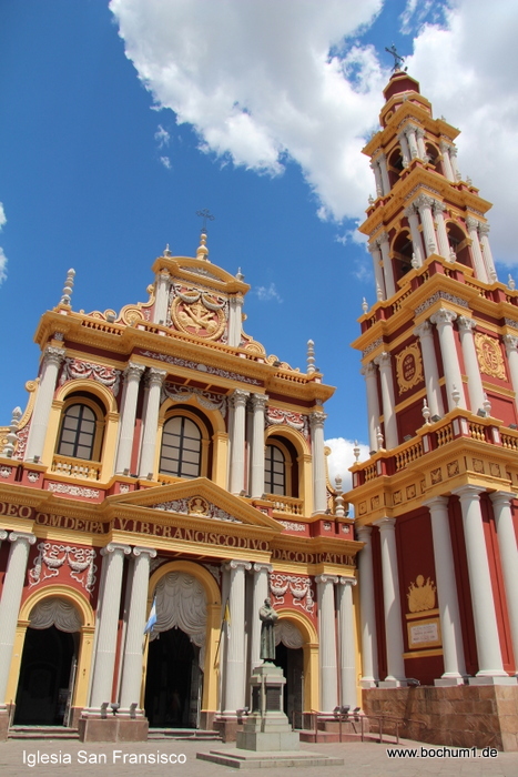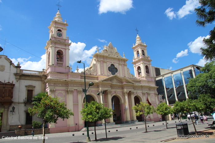Basílica de Salta, ebenfalls im kolonialen Stil und kräftigen Farben
