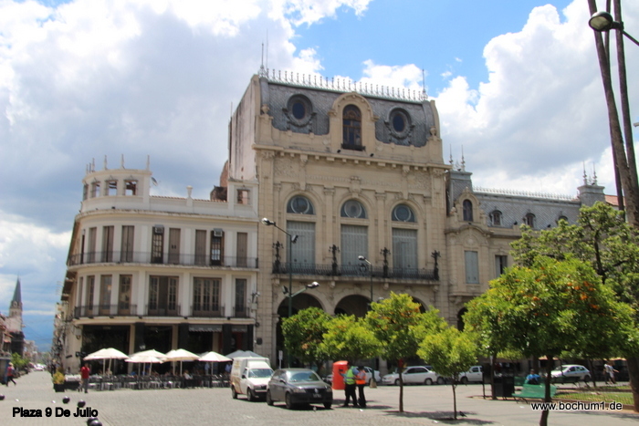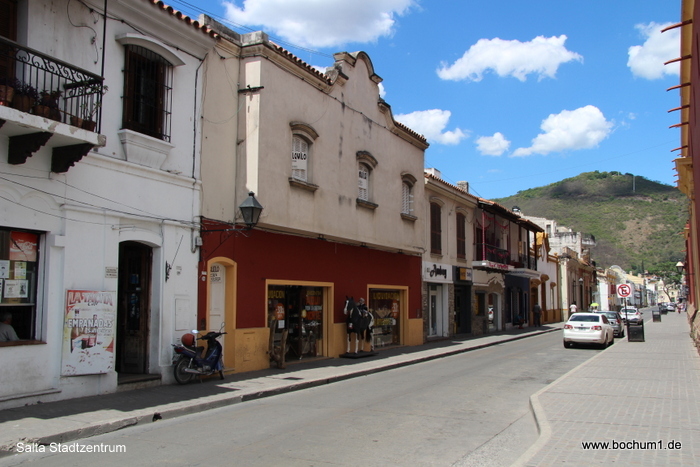zwei Häuserblöcke zum Plaza 9 De Julio, dem Zentrum von Salta. Wie