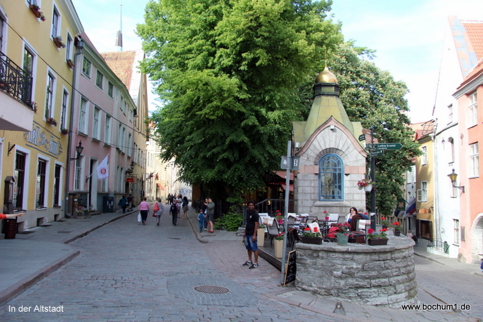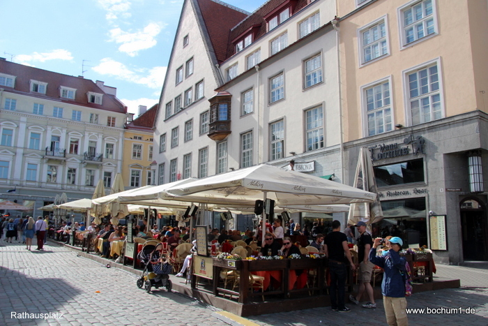 Häusern und der Olaikirche zum Rathausplatz (Raekoja Plats). Unser