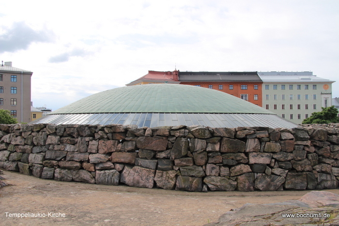 Stille (Kamppi Chapel of Silence) davor. Von innen eine ganz