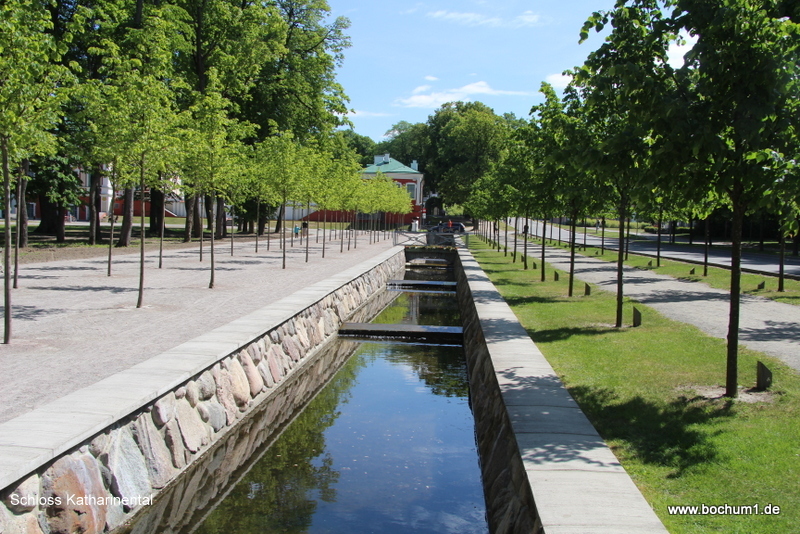 Wasserspielen zur Rechten zum Schloss Katharinental. |