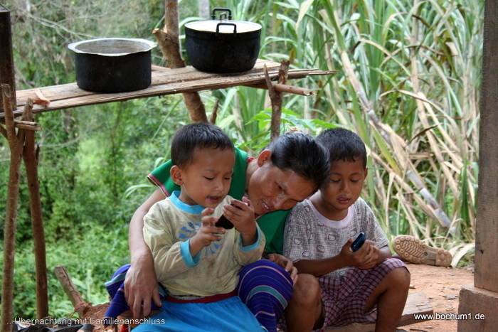aus. Bei den Hütten waren noch mehrere Familienmitglieder, die
