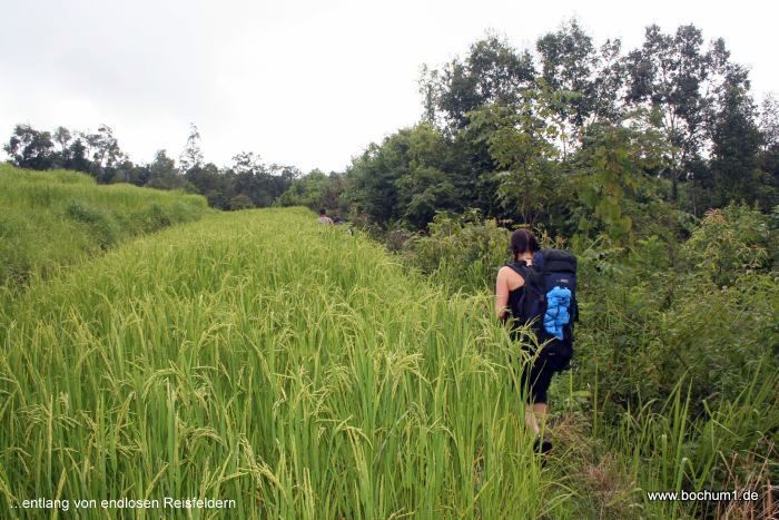 Reisfeld, an dessen Rand wir entlang liefen. Man musste aufpassen,