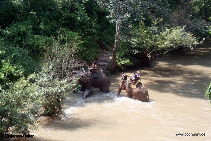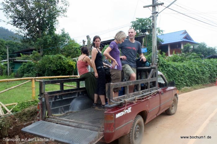 waren sitzend, 1 km Fahrt zum Phutawan Elephant Camp. Etwa 8