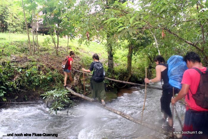 Dann eine weitere Flussquerung über einen Baumstamm und auf der