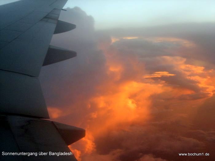 ich und wurde über Bangladesch wach, da wir auf 12.500 Meter Flughöhe