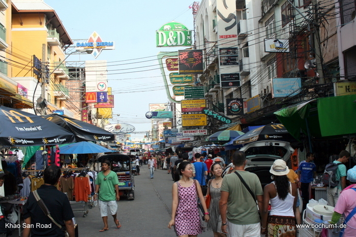 Besichtigungspunkt war die Khao San Road, die Backpackerstrasse