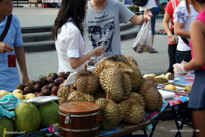 Bekleidung und allerlei Essensständen. Vorher die Reiseleitung