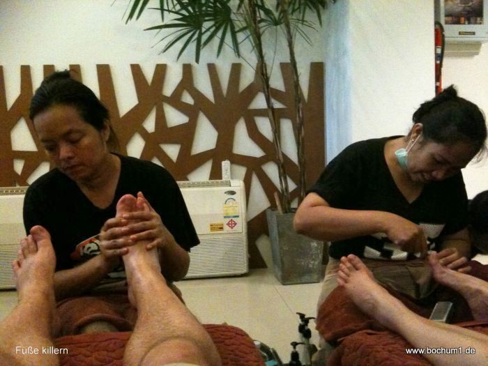 Rd. entlang, an der sich Restaurants, Massage-Salons,