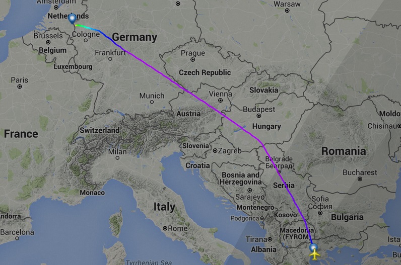 folgte ein 2 St. 20 Min. ereignisloser Flug über den Balkan, Österreich