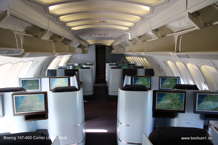 auf das Upper Deck der Boeing 747-400 Combi durchgehen. Für mich war es der