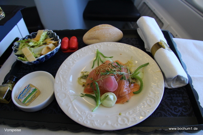 serviert. Mein Favorit war die Vorspeisen-Lachsplatte, die ich auf Nachfrage