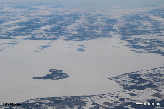 Form eines Hamburgers. Über dem zugefrorenen Lake Simone flogen wir eine 360