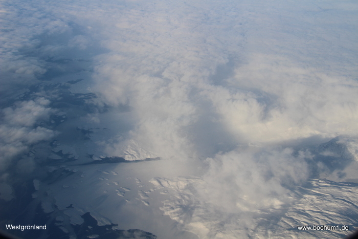 Zwischendurch wachte ich über Grönland mal kurz auf, aber außer weißem Eis