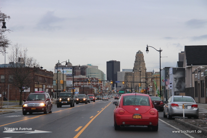 verlaufenden Niagara St. (das in den USA übliche Schachbrettmuster) sah man