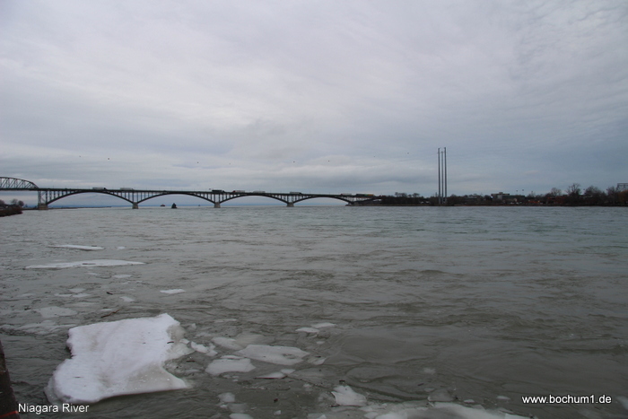 im Niagara Fluss. Da ja Februar war, schwammen auf der Wasseroberfläche