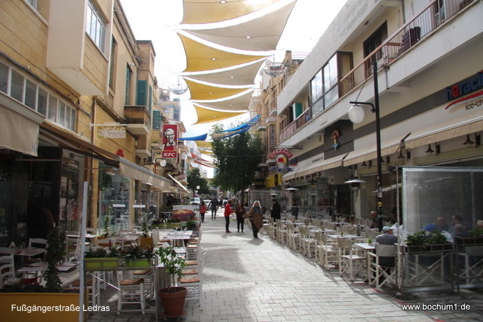 Fußgängerstraße Ledras. Dort reihen sich die üblichen Läden wie H&M, Mc