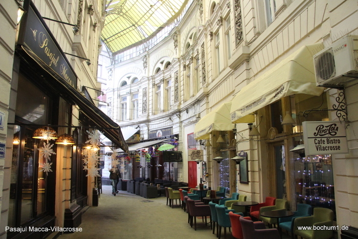 durch die Pasajul Macca-Villacrosse, eine gabelförmige, mit gelbem Glas