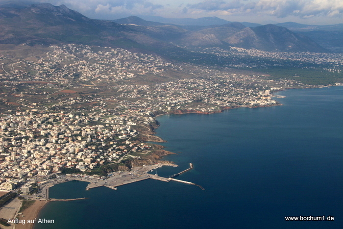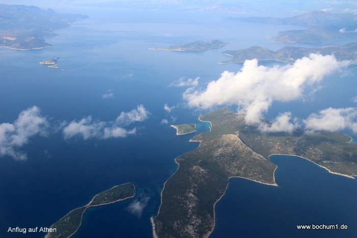 Dann Griechenland und hinaus auf die Ägäis, wo wir im Landeanflug auf Athen über so