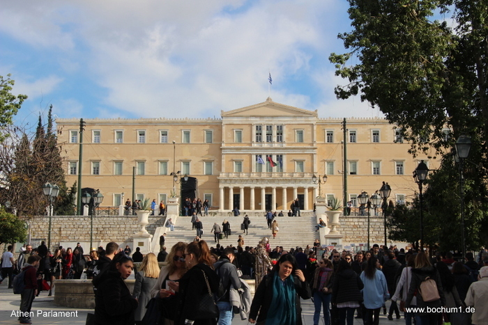 griechischen Parlament, ein recht bescheidenes Gebäude und weiter in einem