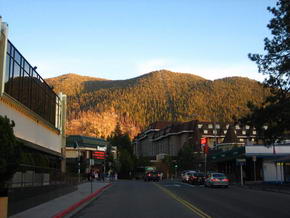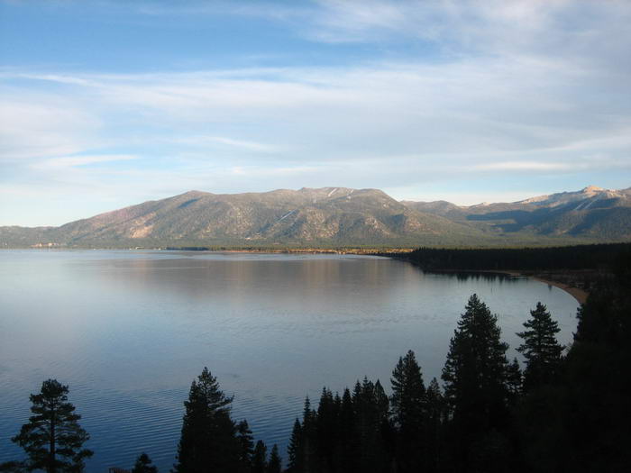 Dort erklärte man mir, dass die Pisten mit Kunstschnee bis unten so gut wie fertig waren, bis in den letzten Tagen ein Wärmeeinbruch alles wieder zur Nichte machte. Das war nachvollziehbar, denn wir hatten wir strahlenden Sonnenschein und kaum war die Sonne über den Berg, schon jenseits der 10 °C. Somit war die Saisoneröffnung um eine Woche verschoben worden. Das Skigebiet, mit seiner höchsten Erhebung über 3.000 Meter, verfügt über 182 Abfahrten, wobei die längste, mit der geworben wird, eine Höhendifferenz von 1.100 Meter überwindet. Aber es brachte alles nichts, sodass wir Plan B verfolgten, der „Desolation Wilderness“, dem gebirgigen Hinterland, im Rahmen einer Wanderung zu besuchen. Vorab hatte ich das Internet bemüht und eine 3,9 Meilen Wanderung (pro Weg) zum Gilmore Lake heraus gesucht. Dazu fuhren wir wie schon am Vortag 20 Minuten in Richtung Emerald Bay, wo in der Nähe des Pope Beach, ein Hinweisschild auf der linken Seite zum Fallen Leaf Lake ist. |