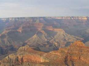 Nach einem etwa 20 minütigen Aufenthalt, fuhr ich den Dessert View Drive weiter Richtung Westen und machte meinen nächsten Stopp am Grandview Point. Im Grunde der Selbe Blick in die Tiefe, nur mit einer anderen Fels- bzw. Canyonformation. Da es trotz der Höhe recht warm war (geschätzte 25 Grad), war die Luft nicht so klar, wie bei meinem Besuch im März, was sich teilweise auf die Fotoqualität niederschlägt. Nach genossener Aussicht und einem kleinen Snack aus meiner unvorstellbar Urlaubskosten senkenden Kühltasche, fuhr ich durch zum Südausgang des Parks, da ich einen Canyonflug machen wollte. Nach einer Fahrzeit von rund 40 Minuten, in welche ich 27 Meilen zurücklegte (ausgehend vom Dessert View), erreichte ich um 18:10 Uhr den kleinen Flughafen, welcher sich bereits kurz hinter dem Parkausgang befindet. |