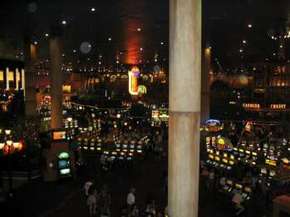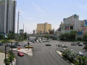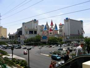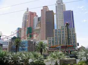 Kein sonderlich schönes oder hässliches Hotel, sondern ein einfach nur großes. Dieses ist schon in der Eingangshalle erkennbar. Ich musste mich sich mal kurz setzen, da es draußen 41 Grad waren, was ich vor einem Automaten machte. Da ich noch 4 Münzen je 25 Cent hatte, warf ich auch zwei hinein und plötzlich hatte ich $5 gewonnen. Derweil wurden ich nach Getränken gefragt. Praktisch. Ich machte noch drei weitere Spiele und war plötzlich bei $7, welche ich umgehend umwechselte, da ich mir ja Hotels ansehen wollte. Weiter ging es über eine Brücke (guter Blick von dort aus auf den Strip) auf die andere Seite des Strips, zum New York-New York. Im Grunde wieder das selbe Spiel. Grosse Einganghalle mit tausenden von Automaten. Der Spielraum war ein wenig Manhattan nachempfunden, aber wer noch nicht dort war, wird nicht viel wieder erkennen. Wieder wolle war mit nach einer kurzen Pause und da ich immer noch meine zwei 25 Cent Stücke hatte, wieder ein kleines Spiel. |
