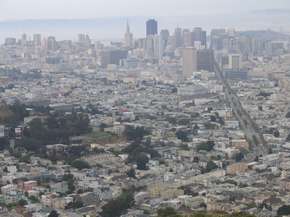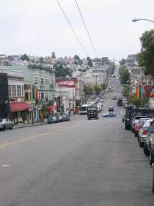 An meinem vorletzten Tag wollte ich erneut San Francisco einen Besuch abstatten. Hierzu fuhr ich um 10 Uhr aus San José wieder los und erreichte eine knappe Stunde später die Stadt an der Bay. Natürlich war es, als ich losfuhr, schon schön warm und die Fahrt ging wieder in den Nebel und damit verbunden, fiel das Außenthermometer mit jeder weitern Meile nördlich. Nach kurzer Suche, fand ich auch unser erstes Ziel. Castro – das Schwulenviertel, am Fuße der Twin Peaks. Da wohl in den vergangenen Tagen eine Parade stattgefunden hatte, hangen noch die ganzen regenbogenfarbenen Fahnen an den Häusern. Im Grunde ein Viertel wie jedes andere auch. Jedenfalls sahen ich keine knutschenden Pärchen auf den Straßen, wie man mir vorher erzählt hatte. Ich besuchte einige Kitschläden, welche Dinge verkauften, mit denen man auf jedem Christopher Street Day in Köln, eine Show gehabt hätte. Beispielsweise eine rosa Plüschhandtasche, in Pudelform. Da die Parkuhr wieder meine Aufenthaltsdauer bestimmte, ging ich in dem Viertel um Punkt 12 Uhr bei einem Fastfondchinesen zu Mittag essen und machte mich erneut auf den Weg auf die Twin Peaks. Aber der Nebel war noch dichter, als beim letzten Besuch und zudem war ich auch noch der einzige Besucher. Das nächste Ziel war Downtown. Ich hatte noch $2 in Münzen, sodass ich eine Stunde Zeit hatte (Parkgeld für die Parkuhr). |
