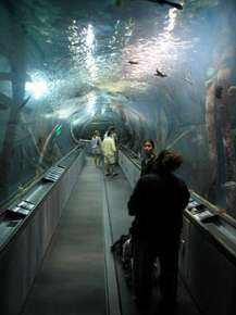 Im Grunde lief ich ziemlich Ziellos durch Downtown und war recht erstaunt, dass zwischen all den alten Hochhäusern, ein Gebäude, ähnlich wie das Kapitol war. Es handelte sich um das Rathaus. Wieder zurück zum Auto fuhr ich wieder zum Fishermans Warf, parkte aber diesmal auf einem bewachten Parkplatz, für $4 die Stunde. Ich lief wieder ein wenig umher und entschloss mich dann, für $12/Person das Sea Aquarium of the Bay zu besuchen. Es handelt sich dabei um ein begehbares Aquarium, auf welchem man als Hauptattraktion, in Röhren durch die Unterwasserwelt gleitet. Man steht dabei auf Förderbändern und sieht rechts und links die Fische an einem vorbeischwimmen. Dabei kommen von Band Erklärungen. Im Grunde schon sehenswert, wenn man ein wenig mehr Zeit in San Francisco verbringen möchte. Lediglich die Erklärungen in der zweiten Röhre, von einem Führer, waren ausgesprochen unverständlich. |