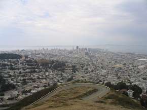 Ich hatte nie Probleme, die Amis zu verstehen oder mich mit ihnen zu unterhalten, aber in dem Moment hatte ich welche. Wieder aus der Unterwasserwelt aufgetaucht, befand sich oben noch eine art Streichelzoo für Meerestiere....na ja.... Achja, das interessanteste hätte ich fast vergessen. Nach dem Betreten dieses Sea Aquariums, kommt man als erstes in Räume, wo allerlei zoorohlogische Erklärungen gegeben werden. Dazu sehr viel Anschauungsmaterial und bildliche Verdeutlichungen. Der Besuch dauerte in Summe 2 Stunden. Da es mittlerweile schon wieder 16 Uhr war, musste ich mich wieder auf den Heimweg machen, da ich am Abend zum BBQ bei Freunden, welche ich von der letzten Reise her kannte, eingeladen war. Auf dem Heimweg stelle ich fest, dass die Twin Peaks nebelfrei waren. Das nutze ich natürlich umgehend, und fuhr hoch. Oben stelle ich fest, dass ich nicht der Einzige war, der das festgestellt hatte. Sogar die fliegenden Händler waren schon da. Nun, der dritte Versuch hat sich wirklich gelohnt. Ich hatte einen grandiosen Überblick über die gesamte Stadt. Ich denke, ein Foto sagt da mehr als 1000 Worte. Lediglich die Golden Gate war immer noch im Nebel und war gar nicht zu sehen. Um 17 Uhr verließ ich den Ort und machte mich auf den Weg. Unterwegs stoppte ich an der St. Andreas Spalte, bzw. an einem Vista Point, welchen man vom Highway I280 anfahren kann. |
