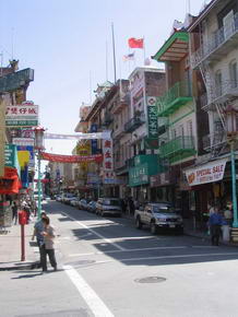 Der Donnerstag begann sehr ruhig. Wir schliefen aus und verbrachten den Vormittag im Garten mit lesen und sonnen. Mit knapp unter 20 Grad Celsius war es zwar für die Jahreszeit recht kühl, aber ein wenig ausspannen musste einfach sein. Gegen 12.30 Uhr machten wir uns auf den Weg, zum 60 Meilen = 96 km entfernte San Franzisko. Nach ziemlich genau einer Stunde Fahrzeit, erreichten wir zuerst China Town mit seiner Hauptstraße, der Grant Street. Auf dem Weg dorthin passieren wir die Fahrtstrecke des Cable Cars, ein witziges Überbleibsel aus vergangenen Tagen. Es gibt drei Linien, die interessanteste aber, ist jene von der Powelstreet den Berg hinunter zum Fisherman´s Wharf. Da die Stadt an der Bay auf einem Hügel gebaut ist, hatten auch wir einen solchen zu überwinden, der an Steigung kaum zu überbieten war. Mit einem europäischen Kleinwagen mit 4 Insassen wäre das wohl nicht zu schaffen gewesen. Nun aber wieder zu unseren Erlebnissen. Ich neige heute irgendwie zu Erklärungen, ala Reiseführer. Da wir aus Las Vegas noch reichlich 25 Ct. Stücke hatten, konnten wir preiswert an einer Parkuhr stehen ($1,50/Stunde), anstelle auf einen der teuren, bewachten Parkplätze (bis zu $6/Stunde) zu parken. Parkraum ist nämlich ein großes Problem in San Franzisko. Chinatown ist die größte Kolonie von Chinesen außerhalb des Mutterlandes weltweit. |