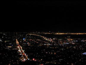 Da sich dort aber nette Restaurants befinden, wollten wir in einem etwas essen. Nachdem wir drei mal um den Block gefahren sind und uns ein Parkplatz vor der Nase weggeschnappt wurde, gaben wir auf und fuhren weiter zu den sich in der Nachbarschaft befindlichen und fast 300 Meter hohen Twin Peaks. Von dort hat man einen gigantischen Blick auf die gesamte Stadt. Da es mittlerweile schon fast 21 Uhr dunkel war, sahen wir das Lichtermeer dieser Millionenstadt zu unseren Fußen. Ein kaum zu beschreiblichter und auf Fotos kaum wiederzugebender Ausblick. Nach einigen Fotos machten wir uns wieder auf den Rückweg, hielten aber zuvor noch an einer Fatsfoodpizzeria, um etwas in den Magen zu bekommen. Über die I-280, welche parallel zur US-101 verläuft, aber meist leerer ist, fuhren wir wieder zurück nach San José, wo wir gegen 23 Uhr eintrafen. Wir unterhielten uns noch kurz mit Haggy und Ihrem Ehemann und waren auch schnell im Gästezimmer verschwunden. |