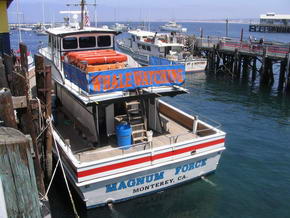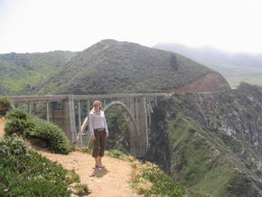 Dort befinden sich, ähnlich wie am Fisherman´s Wharf in San Franzisko am Vortag, diverse Souvenirgeschäfte, Restaurants und sonstige Geschäfte, welche mit Yachting in Zusammenhang stehen. Da die nächste Walbeobachtungstour erst um 13.30 Uhr begann, suchten wir einen anderen Anbieter, wo wir ggf. eine frühere Tour hätten nehmen können. Dem war aber leider nicht so. Deshalb entschlossen wir uns, den Highway One ein Stück in südlicher Richtung zu fahren, um wieder um 13 Uhr am Fisherman´s Wharf in Monterey zu sein. Wir fuhren dazu durch Carmel, dem Ort wo Clint Eastwood mal Bürgermeister war und kamen so auf den landschaftlich interessanten Teil der Küstenstraße Highway 1, welcher sich immer am Pazifik entlang schlängelt. Die ersten Meilen führten noch durch die Ebene, bis wir nach ca. ½ Stunde Fahrt in den hügeligeren Bereich kamen, wo die Straßenführung an der Felssteilküste entlag führt. Wegen der frühen Uhrzeit, war in den höheren Gefilden der Hügel noch Nebel. Wir fuhren die ersten 5 Vista Points an und nutzen diese zu Fotostopps.Von Carmel aus fuhren wir etwa 20 Meilen in Richtung Süden, bis wir etwa 3 Meilen hinter einem großen Brückengebilde wieder drehten, um diesmal rechtzeitig zum Ablegen des Bootes am Pier zu sein. Gegen 12.30 Uhr waren wir wieder am Fisherman´s Wharf, aßen noch ein Stück Pizza in einem Fastfoodrestaurant und kaufen die Karten für die Walbeobachtungsfahrt. |