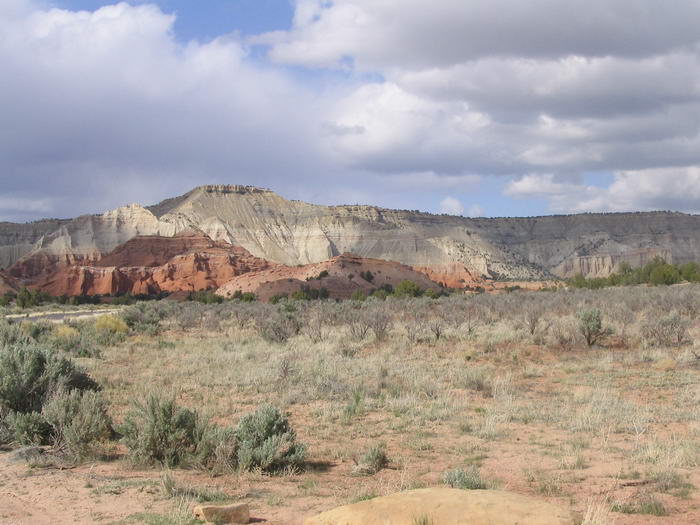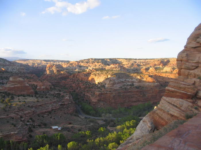Dort zweigt die Hole in Rock Road, ebenfalls eine unasphaltierte Straße ab, welche sehr lohnenswert ist. Jene fuhren wir 3,4 Meilen = 5,4 km entlang (vorher sei angeraten, sich am Visitors Center nach dem aktuellen Straßenzustand zu erkundigen), bis wir in eine kleinere Straße abbogen, der Cedar Wash Road. Jene Straße auch wieder 3,4 Meilen folgend, stellen wir unser Fahrzeug an einer noch kleineren Straße ab, welche aber nur noch mit 4WD zu befahren ist und liefen die letzten 300 Meter. Ziel dieser Exkursion war der Cedar Wash Arch, einem weißen, abgeschmirgelten Felsbogen. Wir liefen an der Abrisskante entlang um ihn aus verschiedenen Perspektiven zu fotografieren, ohne aber ins Tal abzusteigen, denn dazu schien der Fels zu rutschig. Wieder zurück zur Hole in Rock Road fuhren wir jene nicht weiter (weitere Informationen dazu mit Zebra Slot, Golden Cathedral und div. Gulchs bitte Volker´s Seite entnehmen), sondern zurück nach Escalante. |