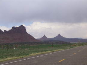 Als wir am Tag sieben unserer Reise gegen 8 Uhr aufstanden und aus dem Fenster sahen, hatte sich das Vorhaben, den Arches Park weiter zu erkunden, erledigt. Denn es schüttete wie aus Kübeln. Auch die Überlegung, weiter östlich nach Colorado zu fahren, hatte sich damit erledigt, da dort lt. Weather Chanal ein Schneesturm tobte. Wenn die Menge Niederschlag aufgrund der Höhe alles als Schnee fällt, würde es wenig Sinn machen, weiter nach Colorado zu fahren und so entschieden wir, die US-191 in südlicher Richtung zum Osteingang des Canyonlands Nationalparks zu fahren. Susanne machte uns aus den Resten der Kühltasche zwei Burger zum Frühstück und gegen 8.30 Uhr ging es los. Zuerst besuchten wir jedoch, das am Vortag zum Frühstücken aufgesuchte Slickrock Cafe. Diesmal allerdings, um in dem sich dort befindlichen Internet Cafe Mail zu checken und ggf. mit Volker von Lalasreisen.de eine Verabredung für Page zu arrangieren. |
