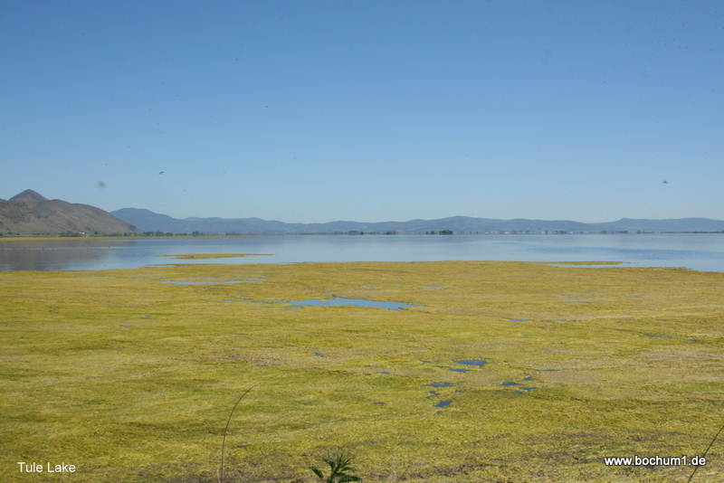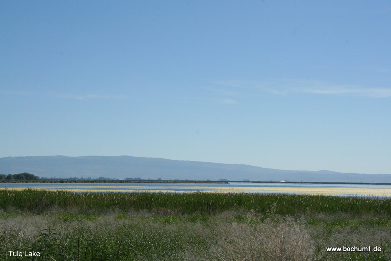 auf das Tule Lake National Wildlife Refuge. Immer parallel zwischen See